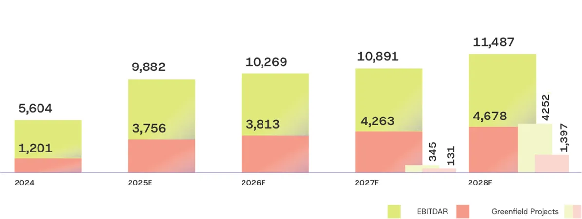 Our financial projections illustrate a powerful growth trajectory. The combination of stable cash flow from existing assets and the incremental revenue from our pipeline projects a significant increase in both revenue and EBITDAR.